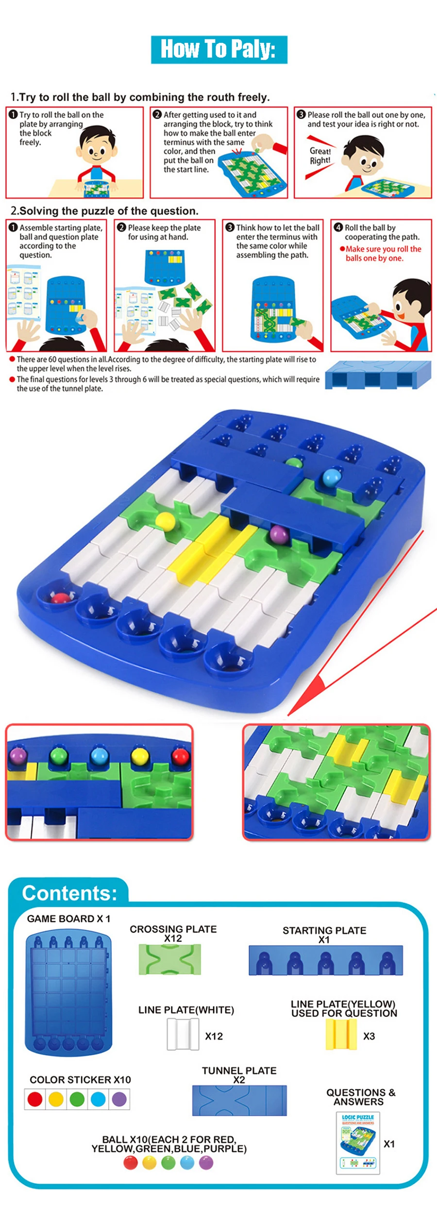 IQ Logical Route Puzzle Bead Mind Training Run Race Track 60 Challenges Brain Intellectual Toy for Children Maze Ball Board Game